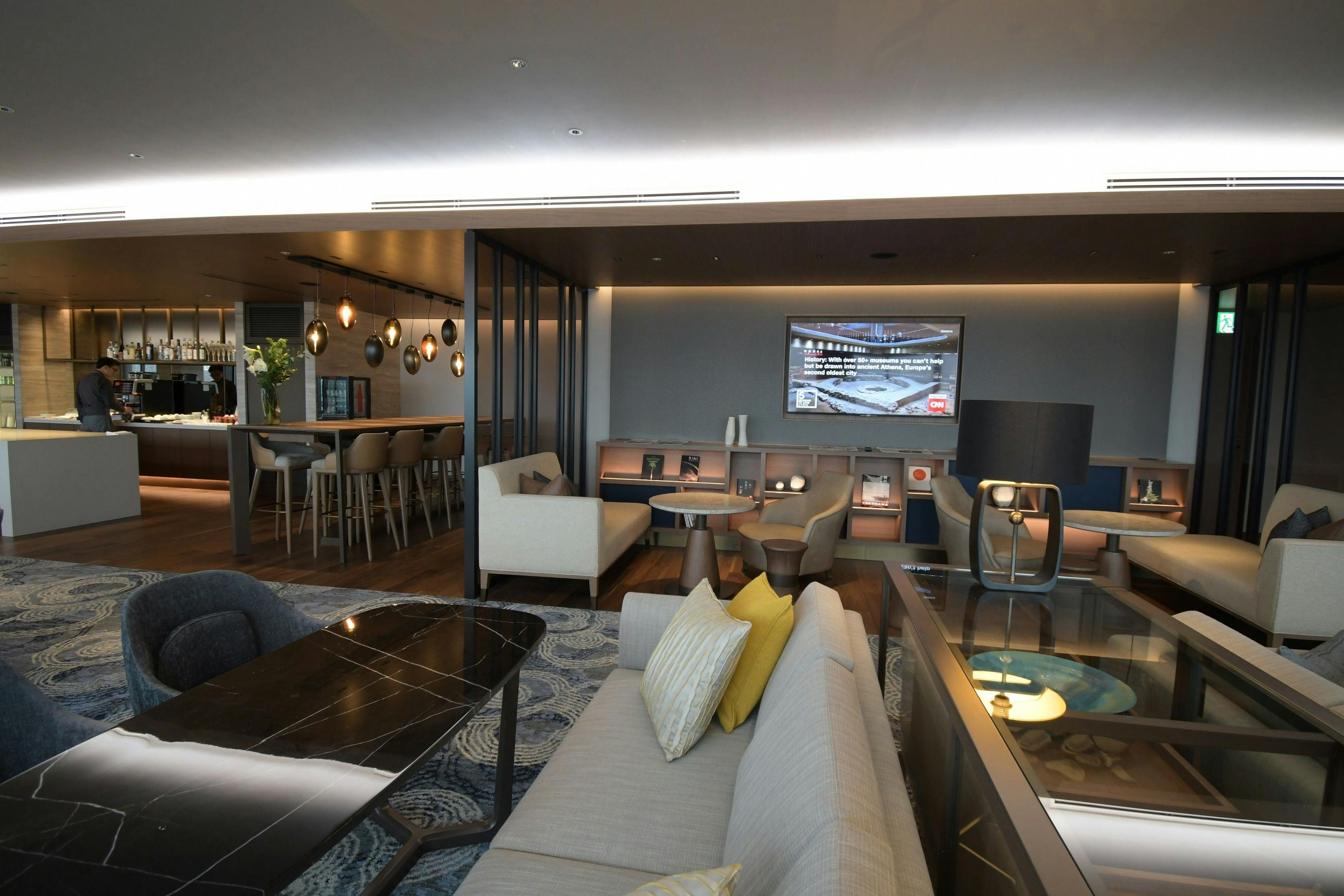 シンプルだが高級感のあるラウンジ