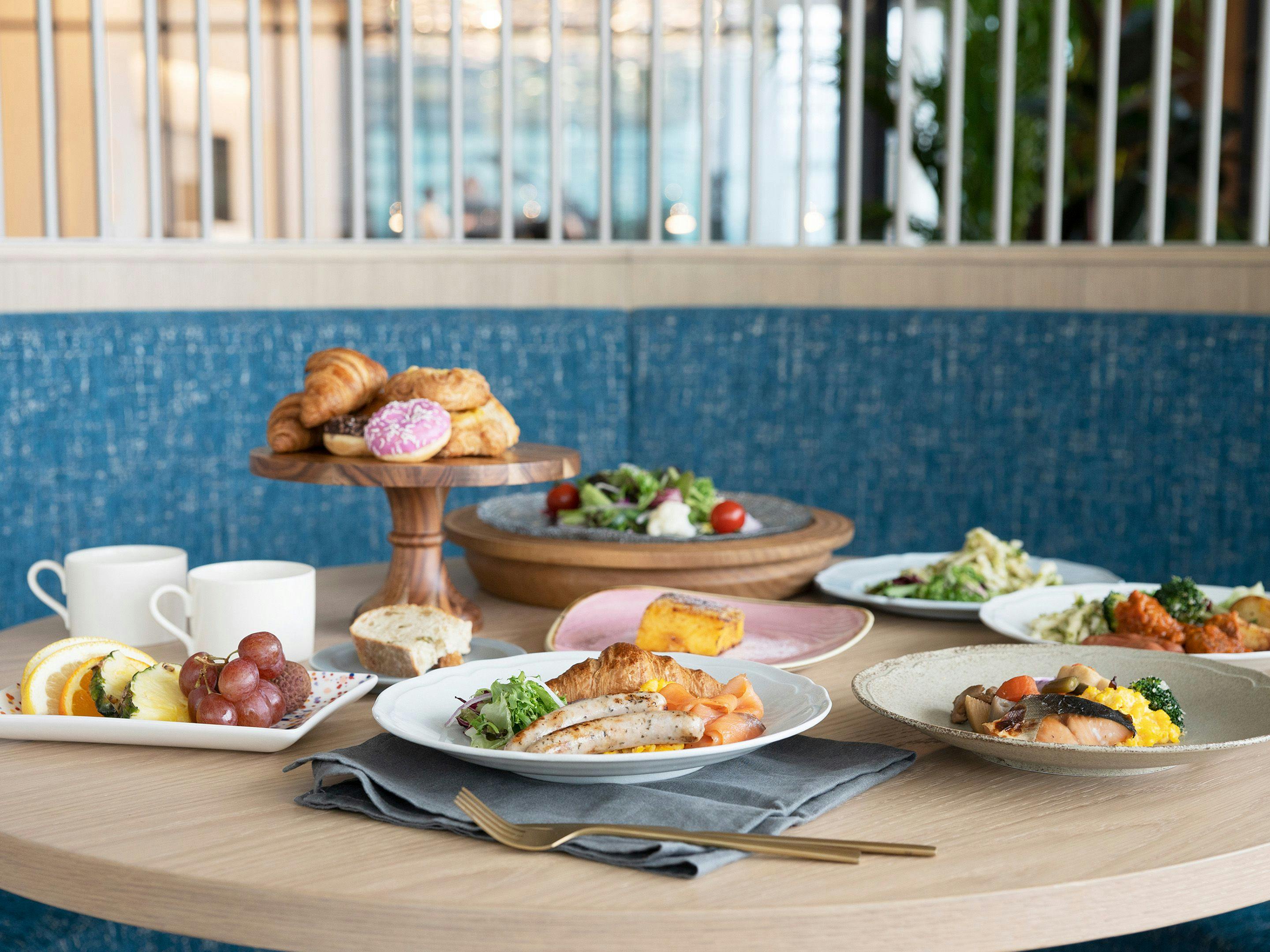 • 朝食では地産地消の食材を使ったメニューやフレンチトーストが楽しめる